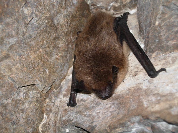 La Sérotine commune, une espèce rarement rencontrée dans les cavités en hiver en Auvergne, notée ce week-end dans la vallée de la Sioule (photo prise en 2011 sur ce même secteur)